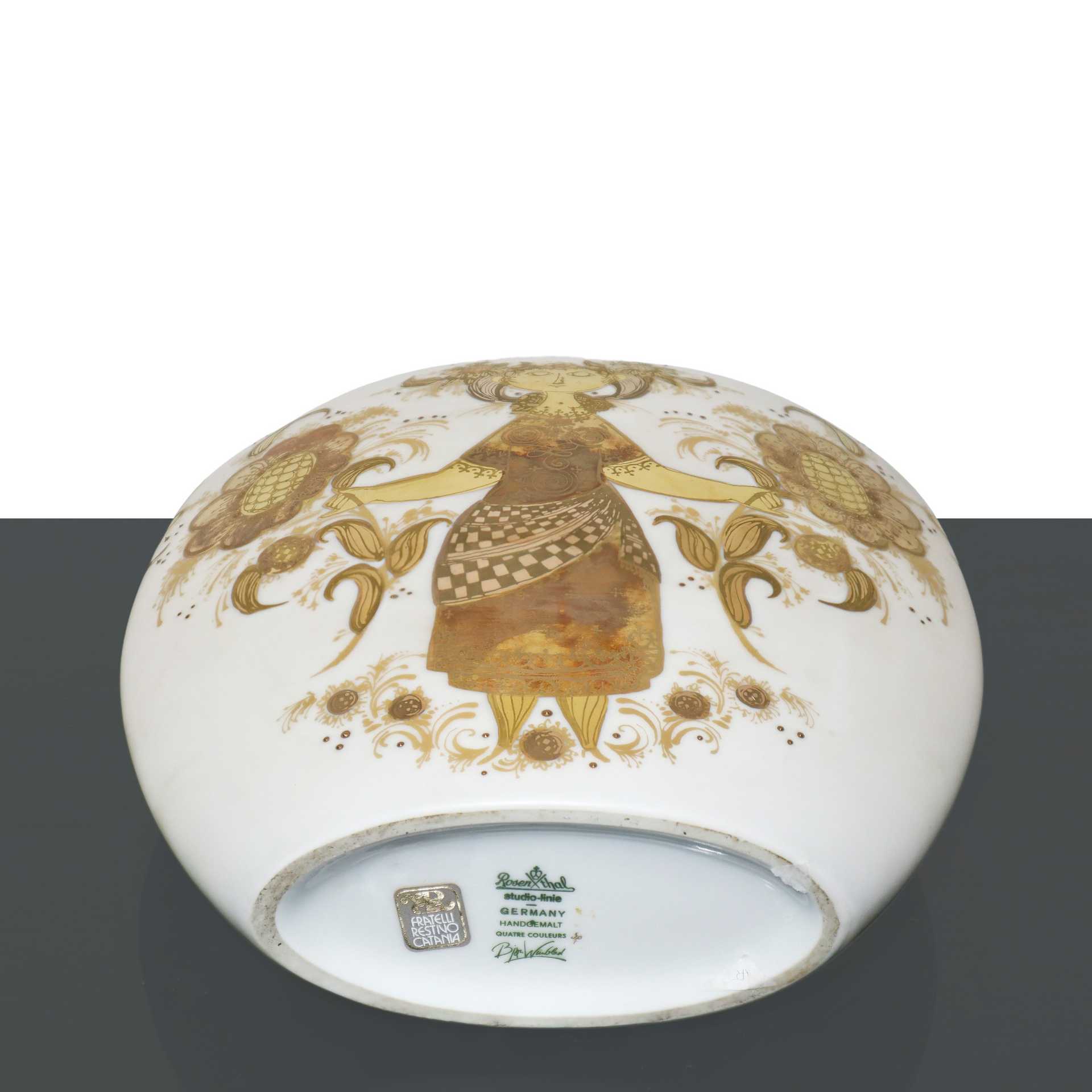 Bjorn Wiinblad per Rosenthal - Vaso in porcellana bianca con decorazioni dorate, 1960 H cm 22x22 Marchio alla baseMarchio alla base