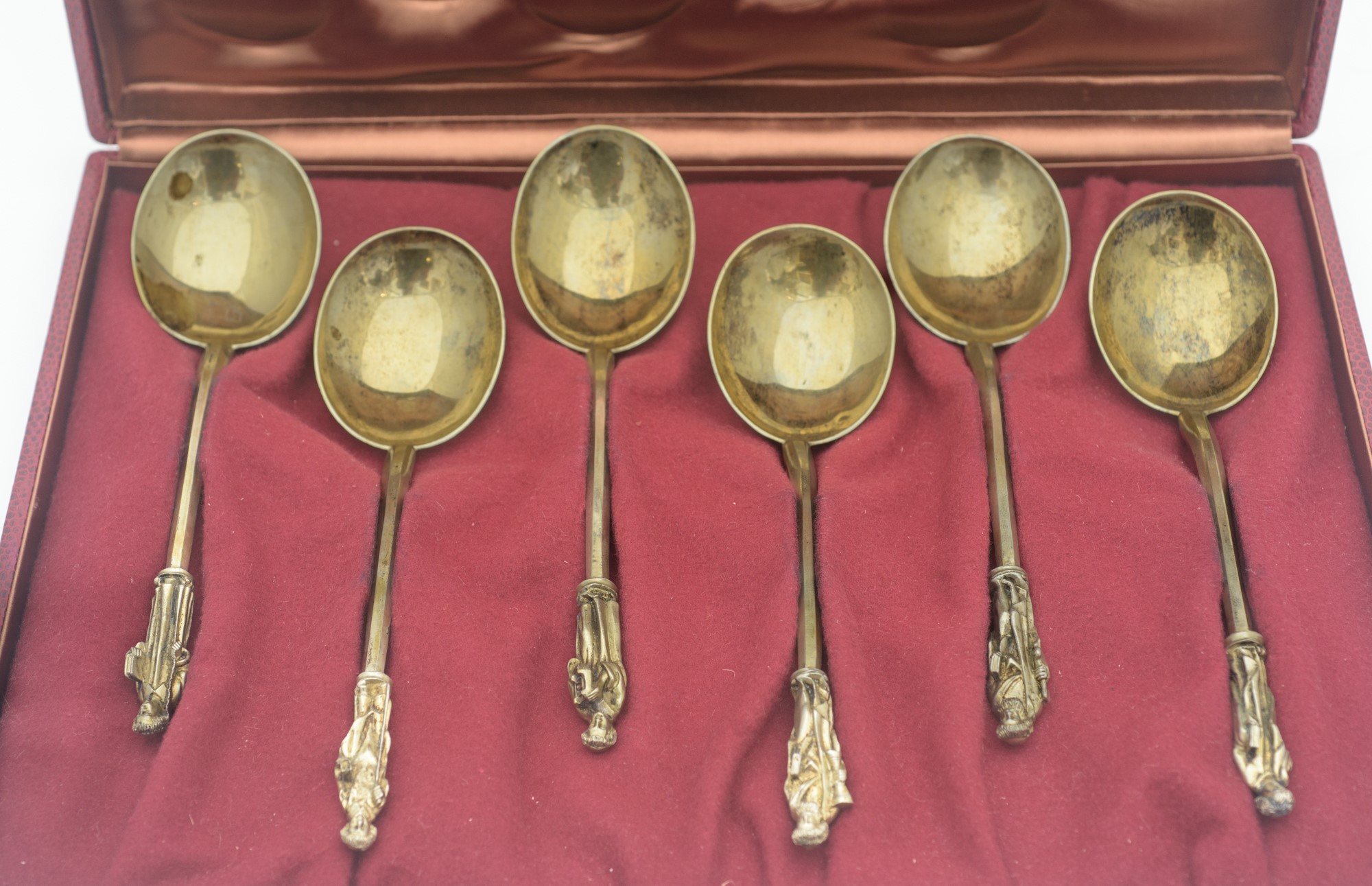 Set di cucchiai in argento Vermeille Manifattura nord-europea, XIX secolo 19 x 6 cm