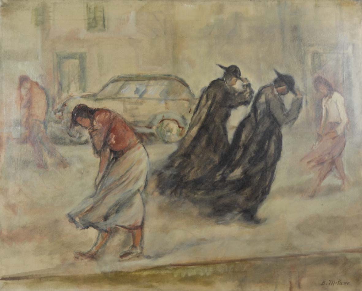 MILANO BRUNO Milano 1907 - Belluno 2001 Giornata ventosa olio su tela 60x75 firma in basso a destra