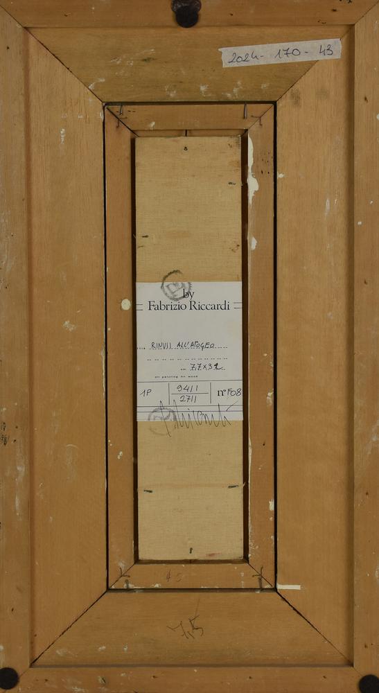 Fabrizio Riccardi RINVII ALL'APOGEO olio su tavola, cm 32x7,7 monogramma e...
