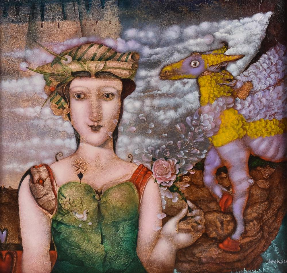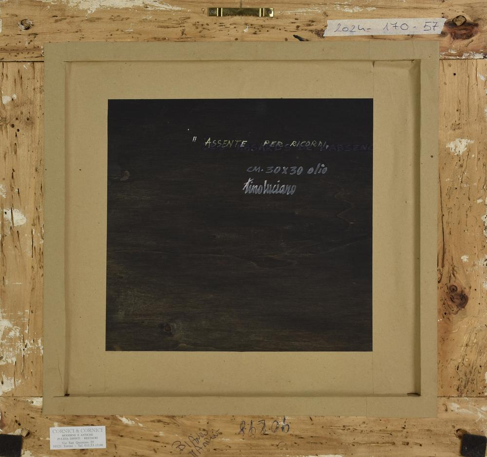 Tino Luciano ASSENTE PER RICORDI olio su tavola, cm 30x30 firma sul retro:...