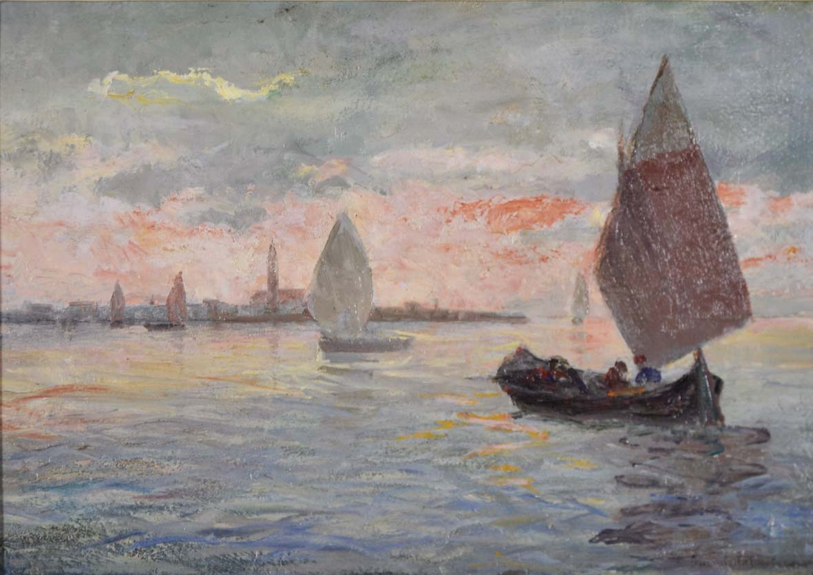 Lotto 112 | FRAGIACOMO ANTONIETTA Venezia 1859 Barche in laguna olio su cartone 21x30...