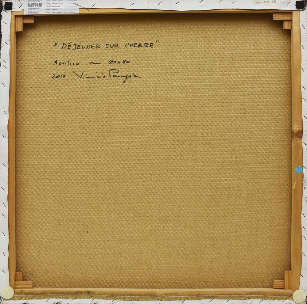 Vinicio Perugia DEJEUNER SUR L'HERBE, 2010 acrilico su tela di juta, cm 80x80...