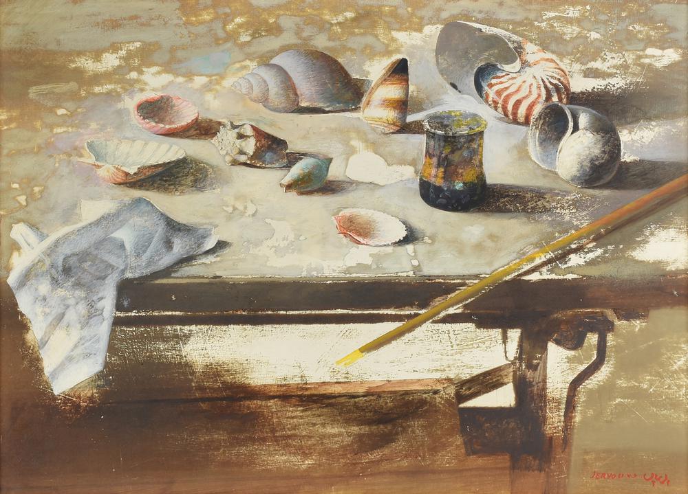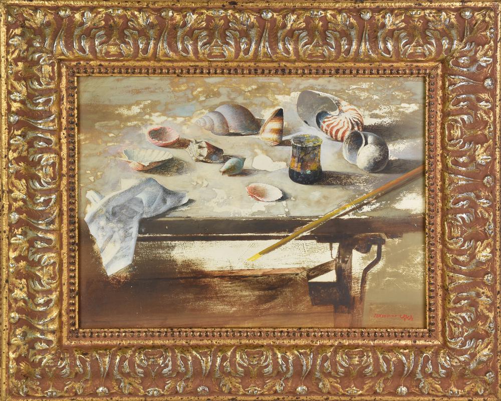 Walther Jervolino NATURA MORTA tecnica mista su tavola, cm 30x40,5 firma
