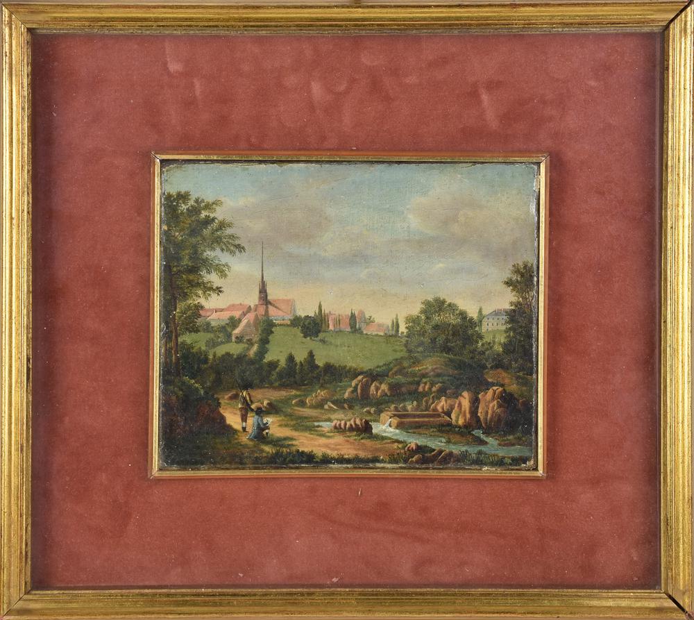 Ignoto del XIX secolo VEDUTA, 1819 olio su tela, cm 17x21 firma Gitlou e data...