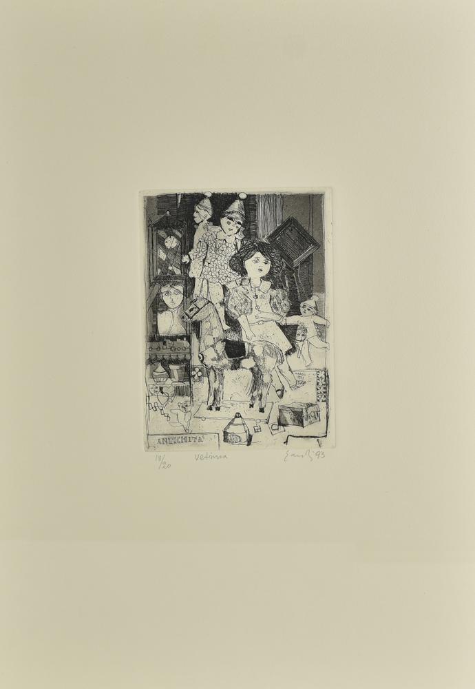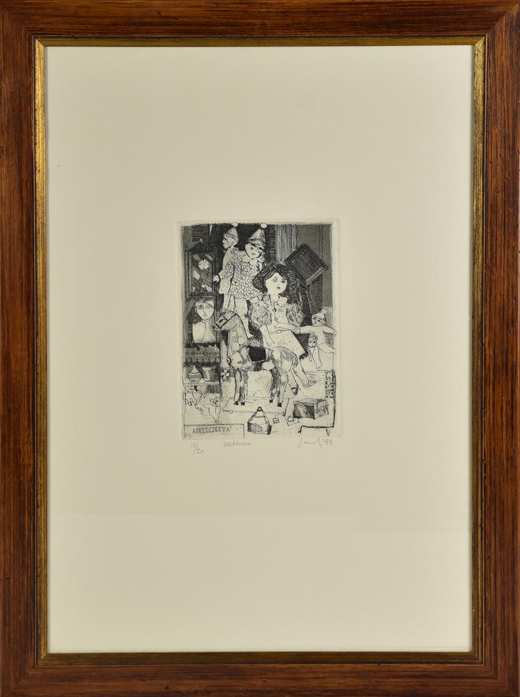 Fernando Eandi VETRINA, 1993 acquaforte su carta Fabriano, cm 17,5x12,5, su...