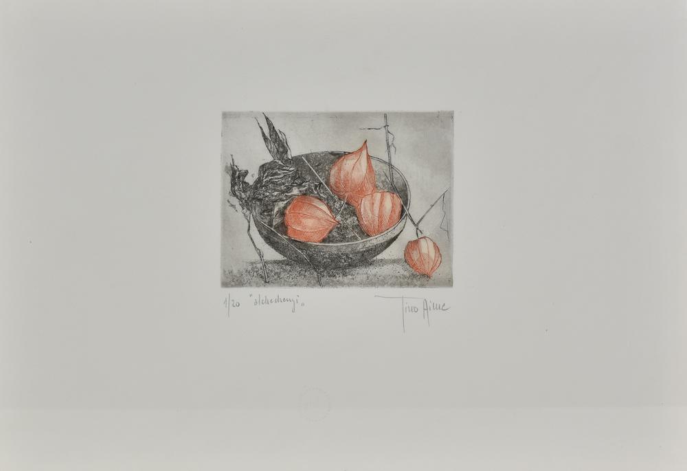Tino Aime ALCHECHENGI acquaforte - acquatinta, cm 12x15,5, su foglio cm...