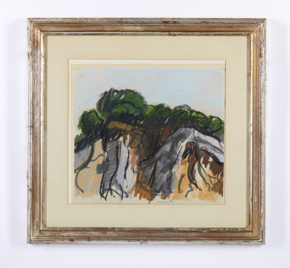 MORLOTTI ENNIO (1910 - 1992) PAESAGGIO-ROCCE. Pastello (matite) su carta. Cm 37,50 x 34,50. firma