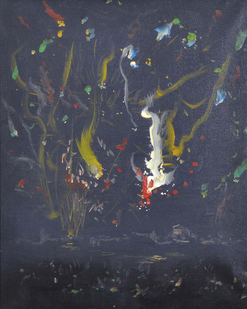SACCHI BORTOLO Venezia 1892 - Bassano del Grappa 1978 Notte del Redentore olio su tela 50x40 firma in basso a destra firma e titolo al retro
