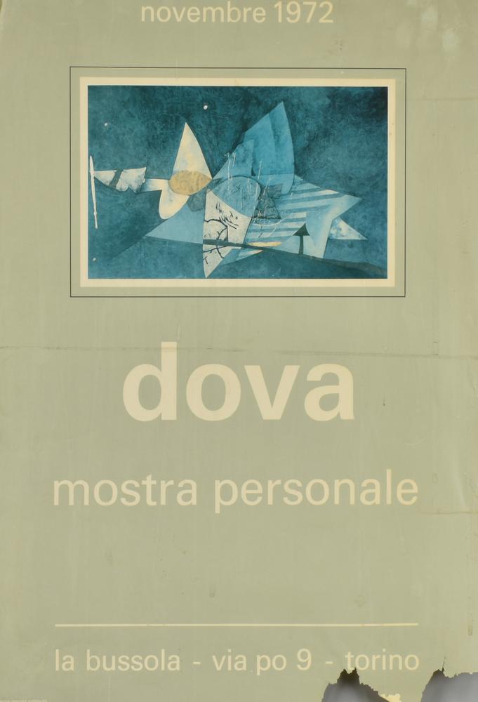 manifesto cm 50x33, per la mostra personale 'Dova' tenutasi alla Bussola,Torino nel Novembre 1972