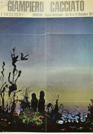 manifesto cm 70x48, realizzato da Tipografia Egizia con soggetto l'opera 'Dopo la Tempesta' per la mostra 'I Neroidi' tenutasi al Casino' Municipale di Sanremo dal 16 al 31 dicembre 1971