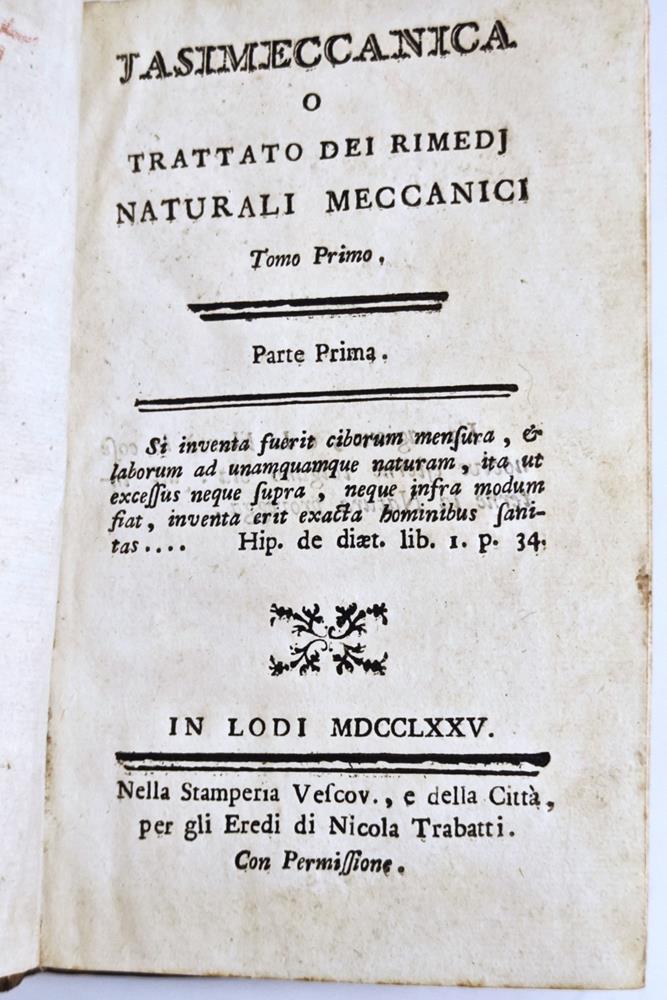 Lotto 32 | Jasimeccanica o trattato dei rimedii naturali meccanici Antonio Arrigoni