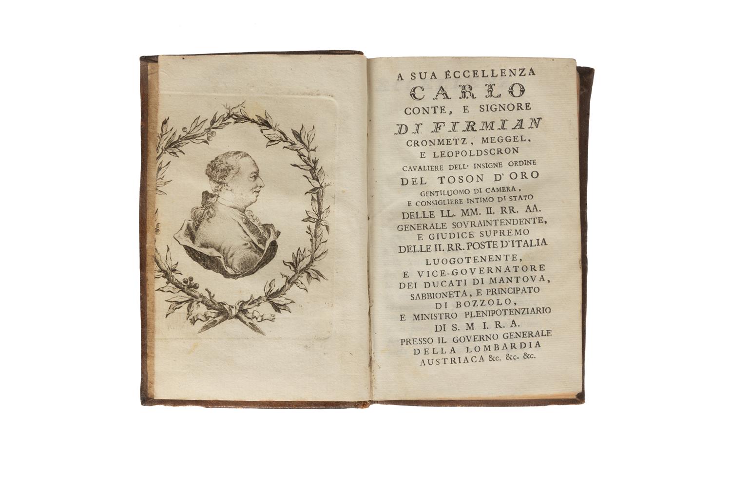 Due volumi formato 8°, rilegati in piena pelle coeva, ritratto inciso in rame in antiporta, pp. [8], 268 - [4], 284, due tavole f.t. incise in rame, esemplari in buone condizioni.