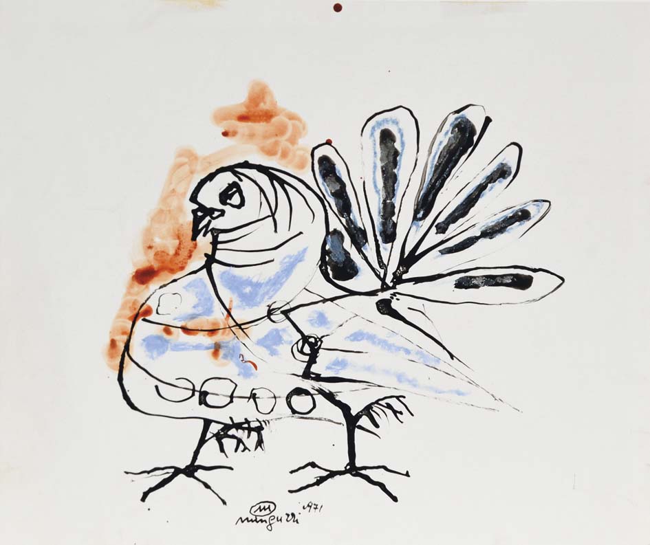 MINGUZZI LUCIANO Bologna 1911 - Milano 2004 Pavone 1971 tecnica mista su carta 27x32 firma e data in basso al centro Provenienza: Studio Merli Grafica Contemporanea Ferrara - timbro al retro