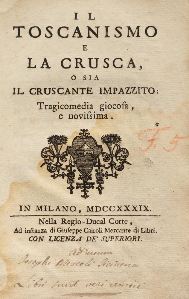 Il toscanismo e la Crusca, o sia il cruscante impazzito: tragicommedia giocosa e novissima.
