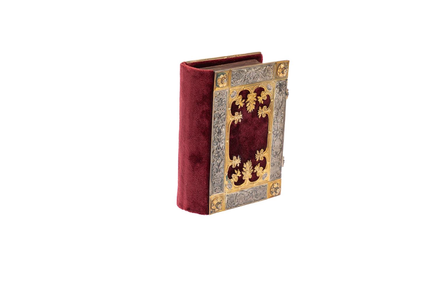 Legatura in argento cesellato con parti dorate, su fondo in velluto purpureo. Sui fermagli argentei, due piccoli rubini. Il volume di commento (17×24 cm.; 240 pagine) è curato da Andrea De Marchi.