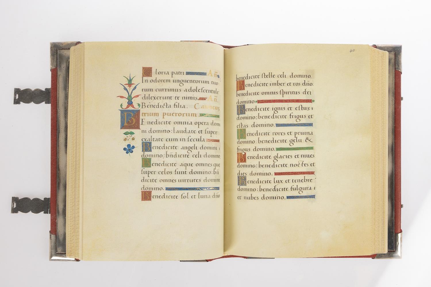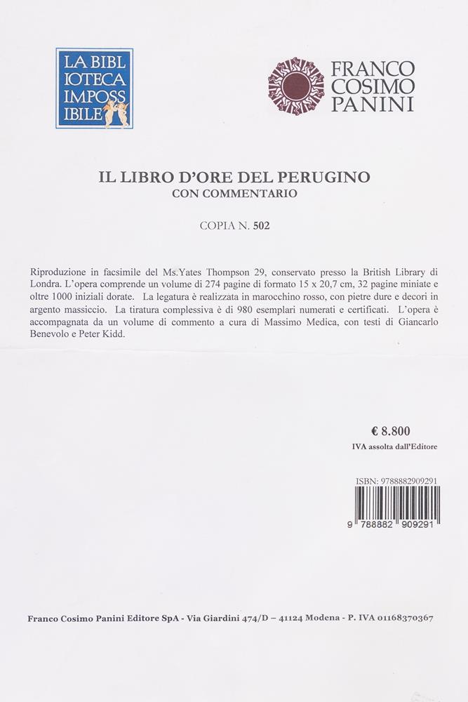 Riproduzione in facsimile del manoscritto con miniature, a piena pagina, realizzate dal Perugino altri miniatori quali Lorenzo Costa, Amico Aspertini, Francesco Francia, Matteo da Milano