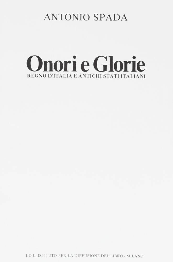 Antonio Spada. Onori e gloria. Regno d'Italia e antichi stati italiani. Istituto per la Diffusione del Libro, Milano