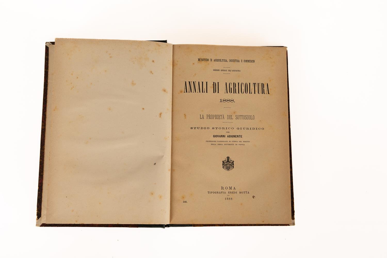 2) Annali di Agricoltura - La proprietà del sottosuolo: studio storico-giuridico - Roma, 1888.