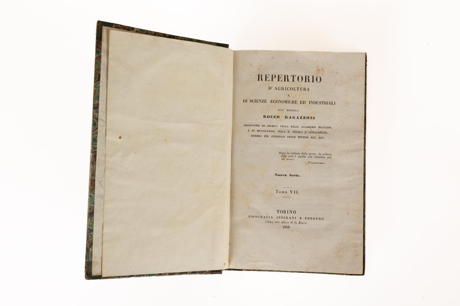3) Ragazzoni - Repertorio di Agricoltura e di Scienze Economiche e Industriali - Torino, 1847/1848. (quattro volumi)