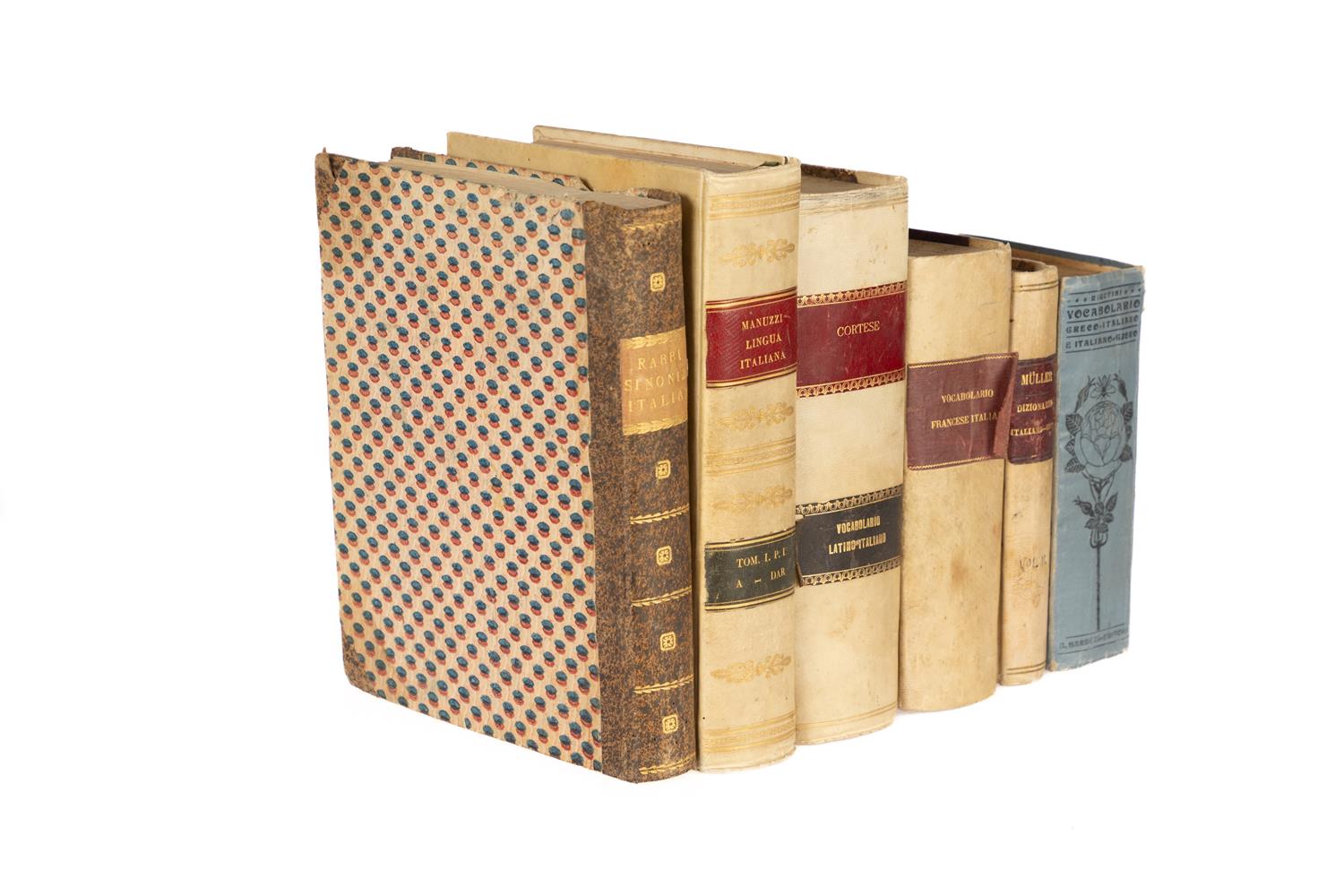 Sei volumi formato 4°/8°, rilegati in pergamena / mezza pergamena coeva, esemplari in discrete condizioni: fioriture, bruniture, legature usurate.