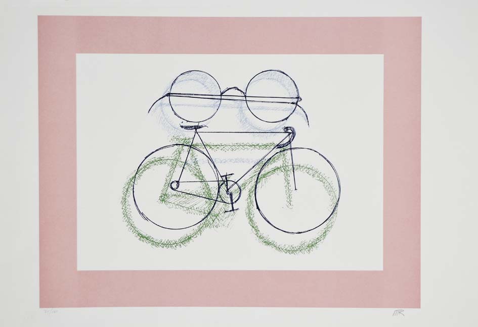 MAN RAY Philadelphia 1890 - Parigi 1976 Bicicletta con occhiali (1975) litografia es. 75/100 49x69 siglato in basso a destra tiratura e timbro a secco in basso a sinistra