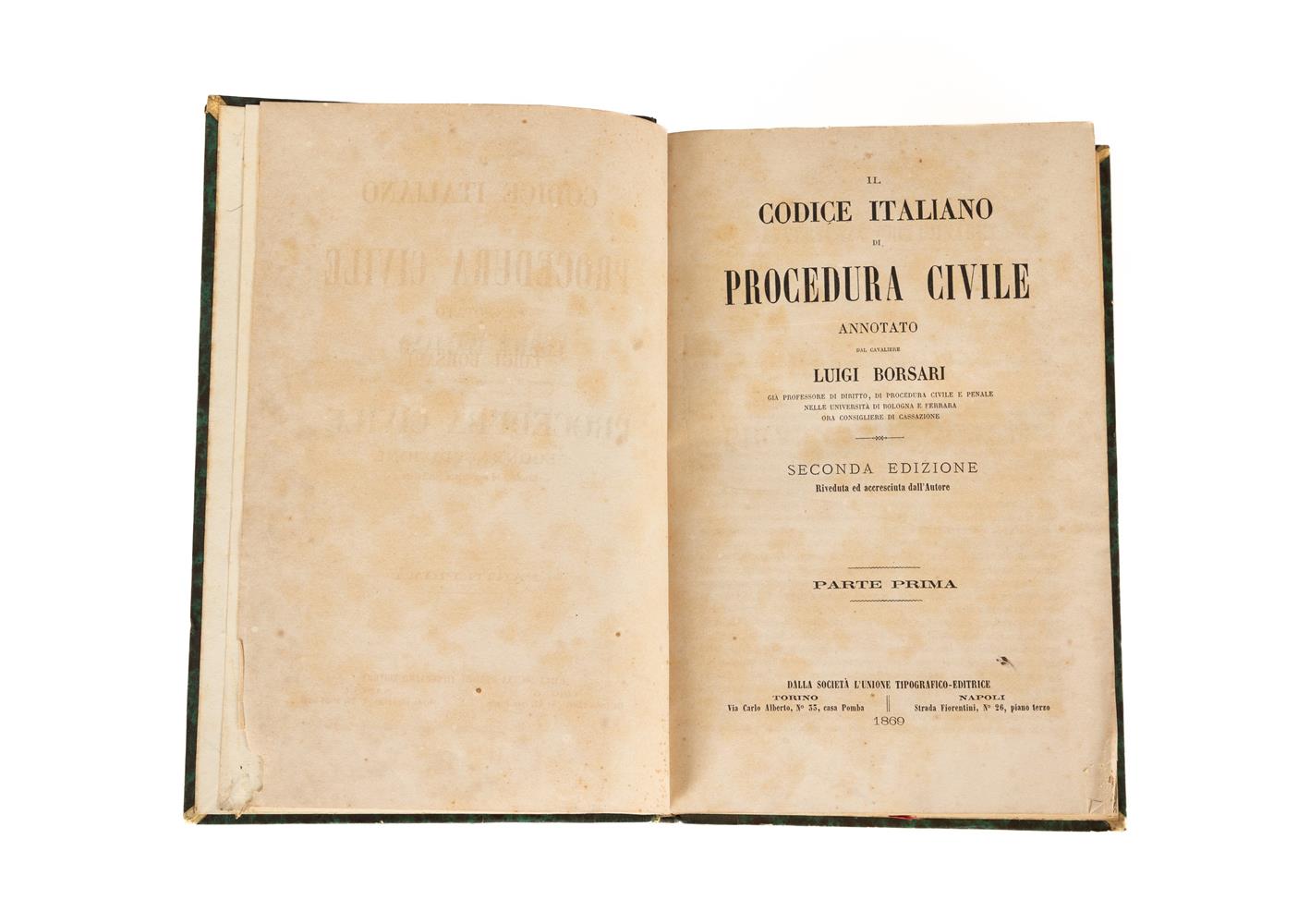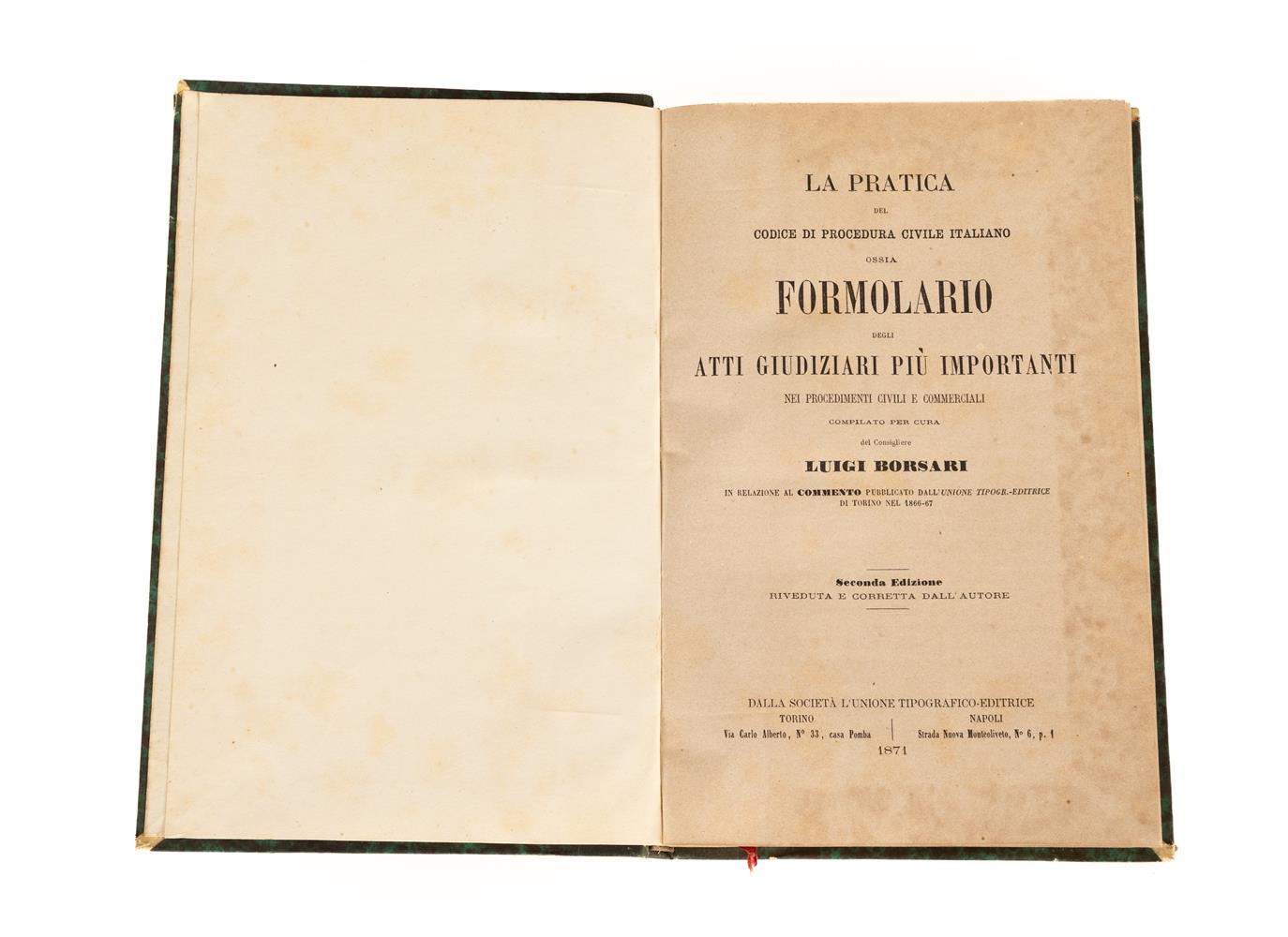 1) Borsari - Il Codice Italiano di Procedura Civile annotato - Torino, 1869. (due volumi)