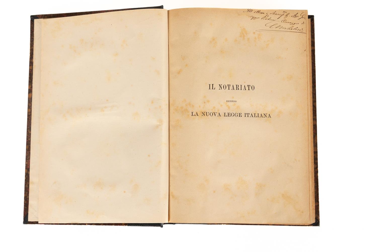 3) Michelozzi - Il Notariato secondo la nuova legge italiana - Firenze, 1880. (con dedica autografa dellʹautore)