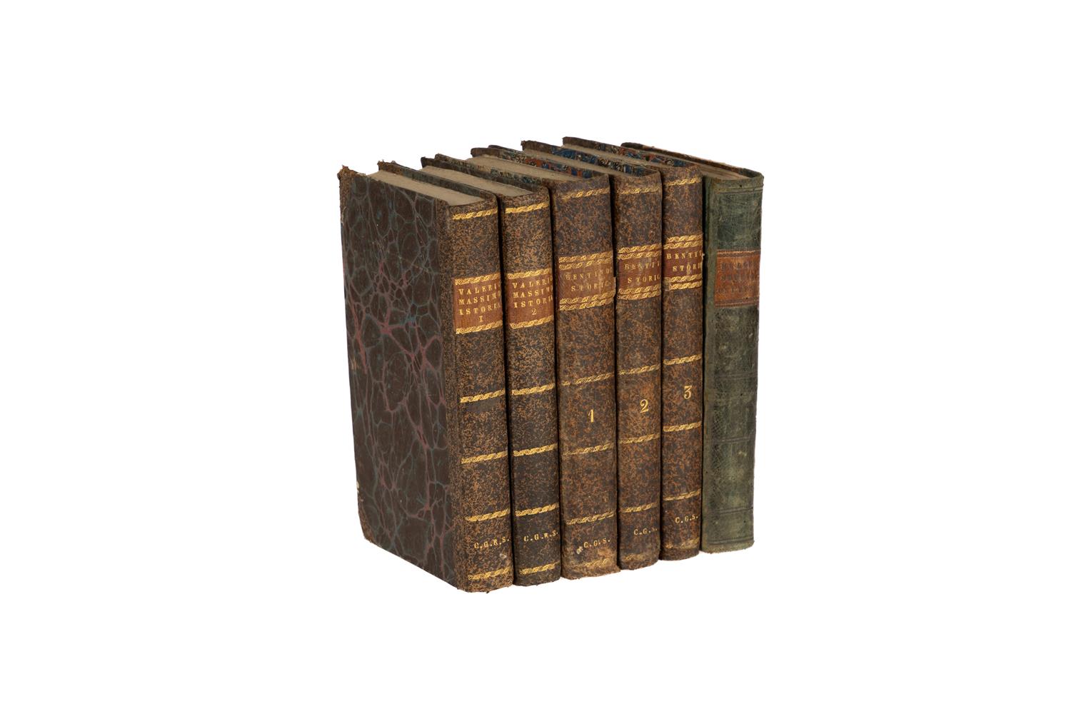 Sei volumi formato 8°, rilegati in mezza pelle coeva, titoli e fregi in oro ai dorsi, esemplari in buone condizioni, lievi bruniture, fioriture, legature con tracce dʹuso.