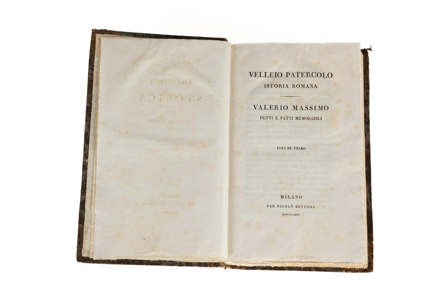 1) Velleio Patercolo - Istoria Romana / Valerio Massimo - Detti e fatti memorabili - Milano, 1826. (due volumi)