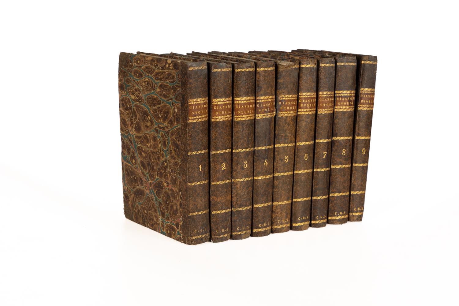 Nove volumi formato 8°, rilegati in mezza pelle coeva, titoli e fregi in oro ai dorsi, esemplari in buone condizioni, lievi bruniture, fioriture, legature con tracce dʹuso.