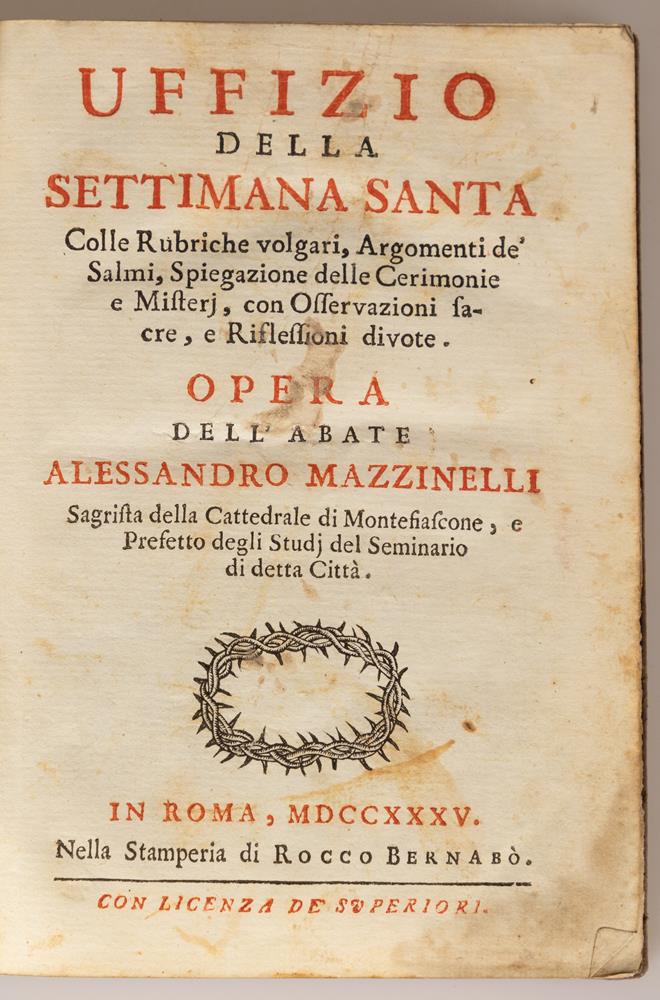 Uffizio della settimana santa colle rubriche volgari Alessandro Mazzinelli