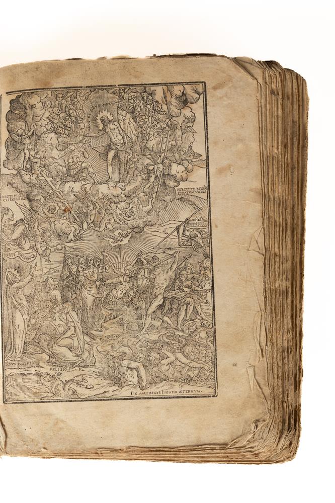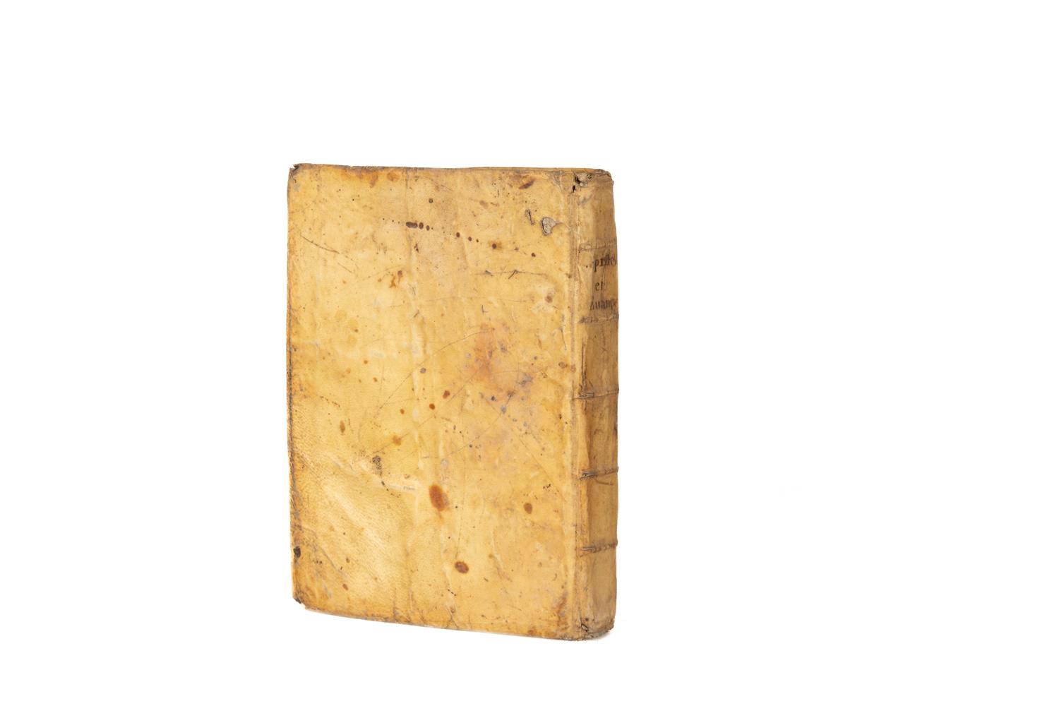 Volume formato 4°, rilegato in pergamena coeva, antiporta allegorica xilografica