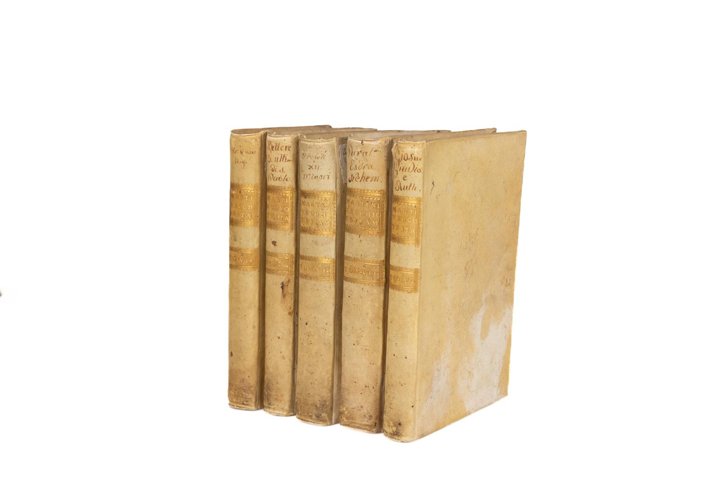 Lotto di cinque volumi formato 8° rilegati in pergamena, comprende: