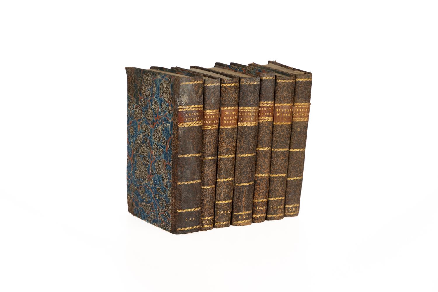 Lotto di sette volumi formato 8°, rilegati in mezza pelle coeva