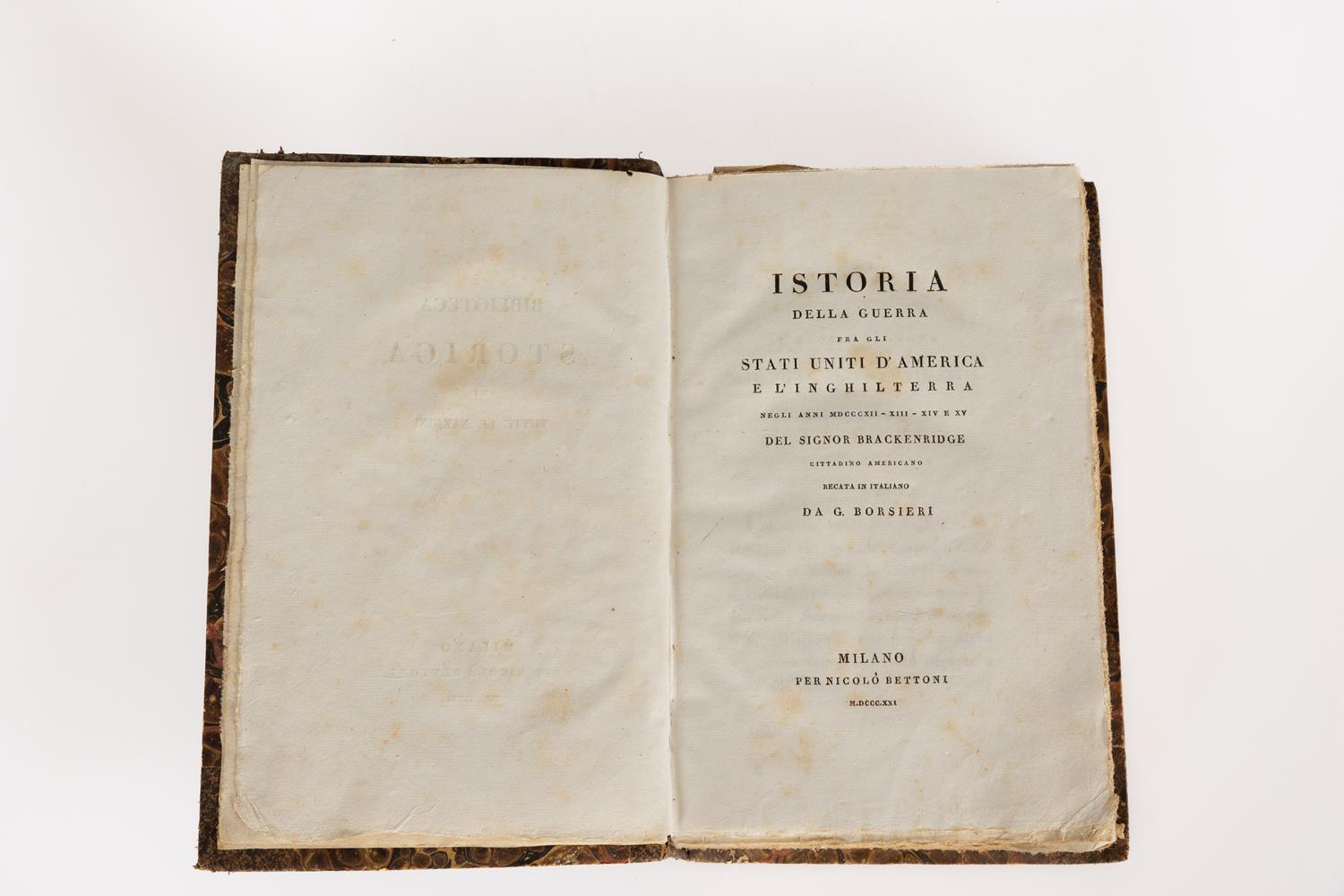 7) Brackenridge - Istoria della guerra tra gli Stati Uniti dʹAmerica e lʹInghilterra negli anni 1812/1815. - Milano, 1821.