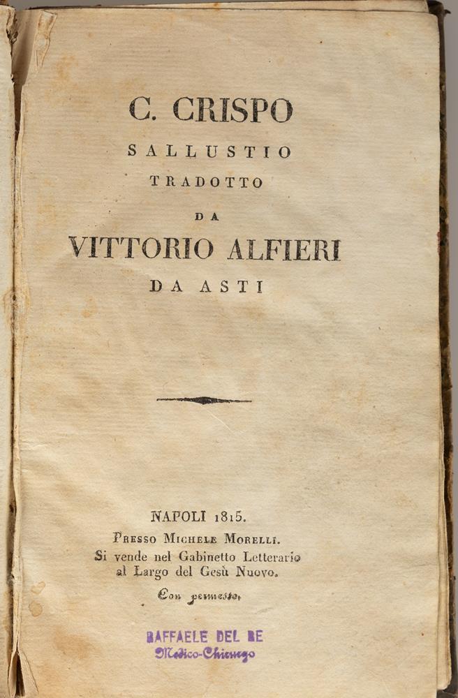 1) C. Crispo Sallustio tradotto da Vittorio Alfieri - Napoli, 1815.