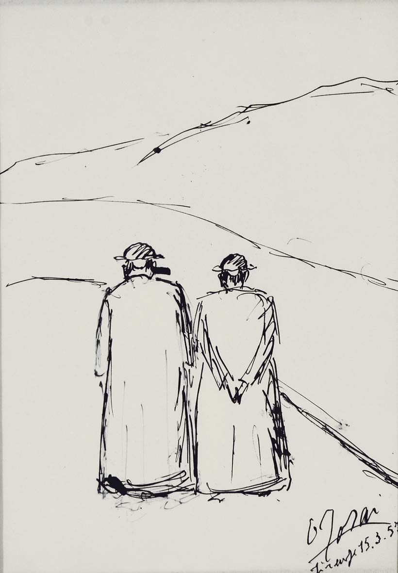 ROSAI OTTONE Firenze 1895 - Ivrea 1957 La passeggiata 1957 disegno a china su carta 48x38 firma e data in basso a destra