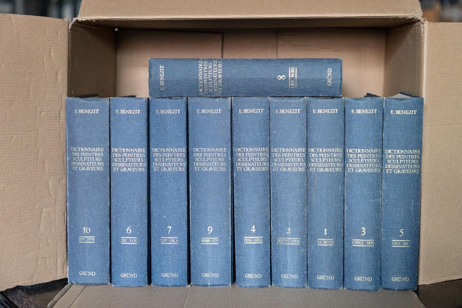 Box letteraria contenente lotto di 10 volumi del Dictionnaire des Peintres Sculptures Dessinateurs et graveurs