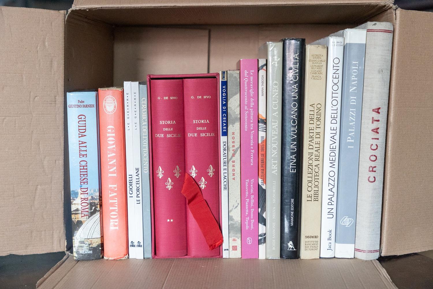 Box letteraria contenente lotto di 17 volumi d'arte e di storia