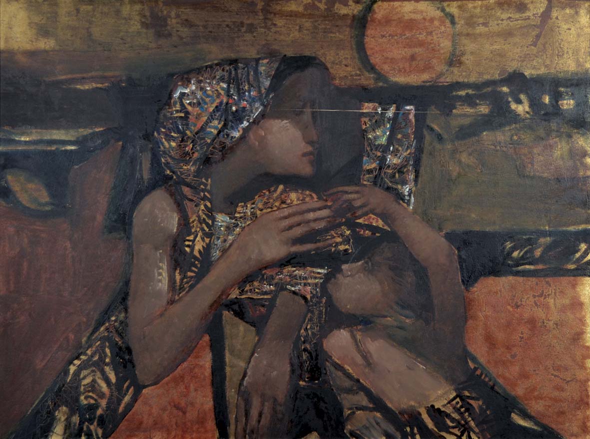 DINETTO LINO Este (Pd) 1927 Studio per maternità olio su tavola 60x80 firma e titolo al retro