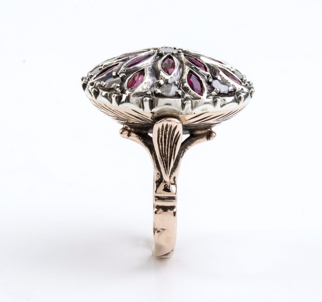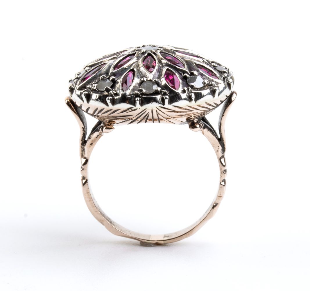 Anello in oro, argento, rubini e diamanti