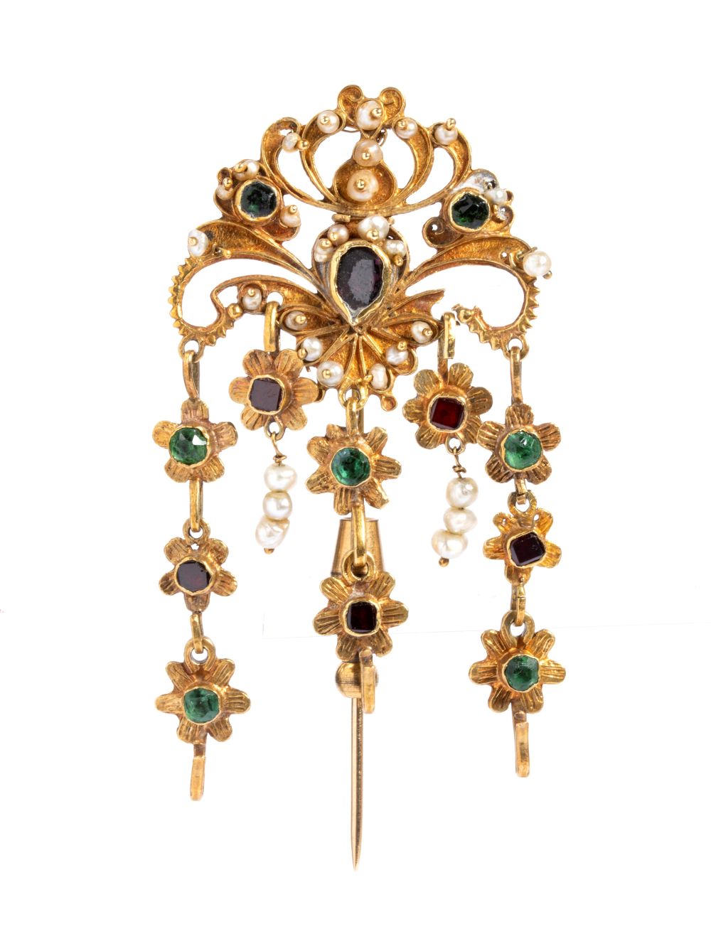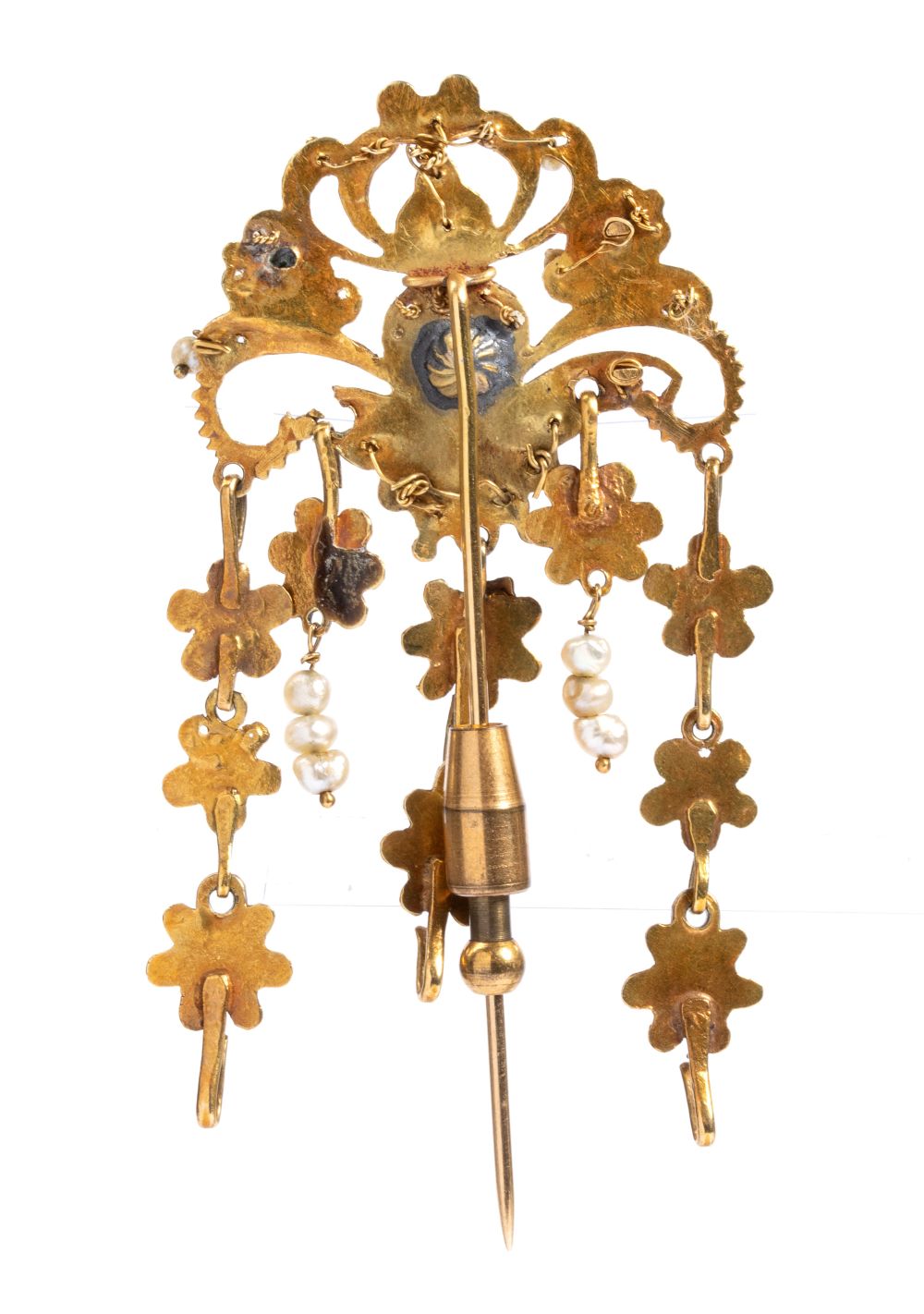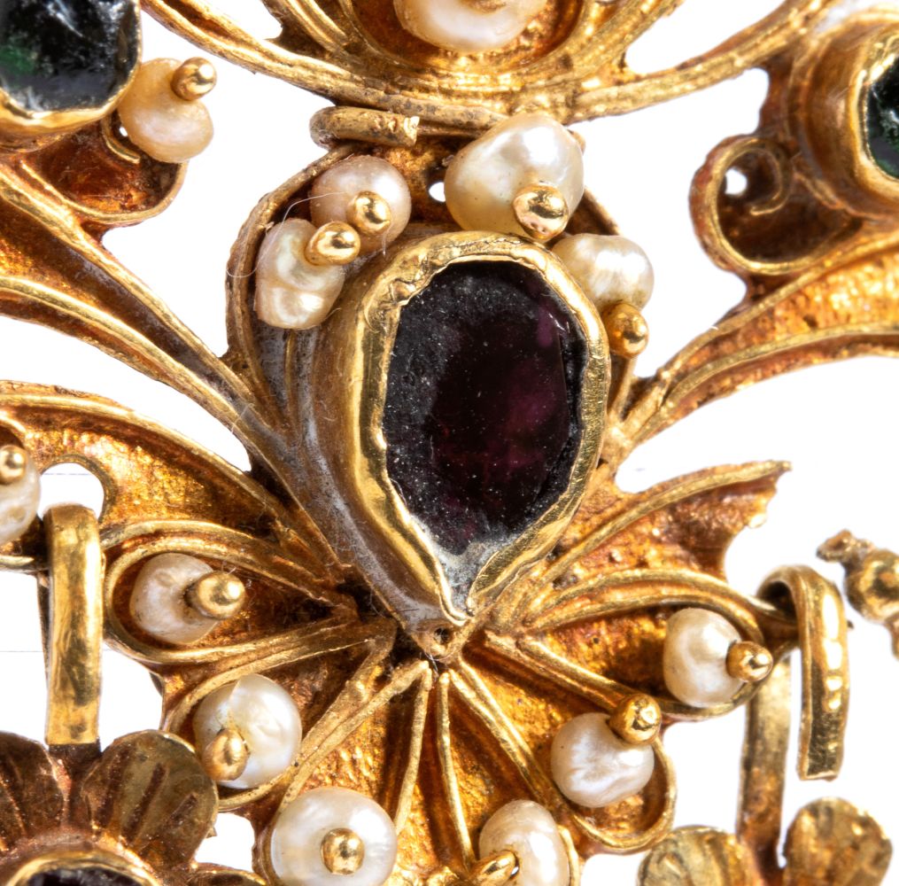 Spilla in oro con perle di fiume e paste vitree Sicilia, inizio XX secolo