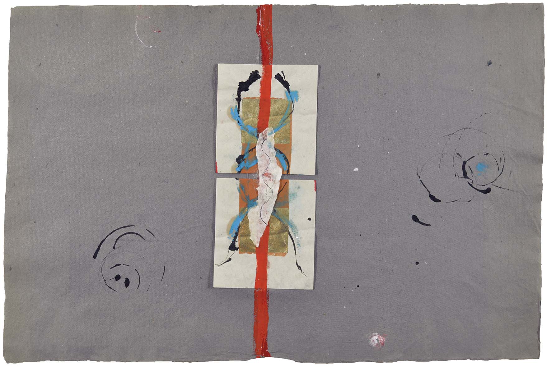 BARTOLINI LUCIANO Fiesole 1948 - Milano 1994 Spazi interiori 1986 foglia d'oro, tessuto e gesso su carta a mano e seta 52x76 firma e data al retro Esposizioni: Galerie Walter Storms Monaco - etichetta al retro