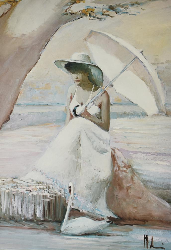 Innocenzo Melani DONNA CON OMBRELLO riproduzione fotolitografica su carta, cm...