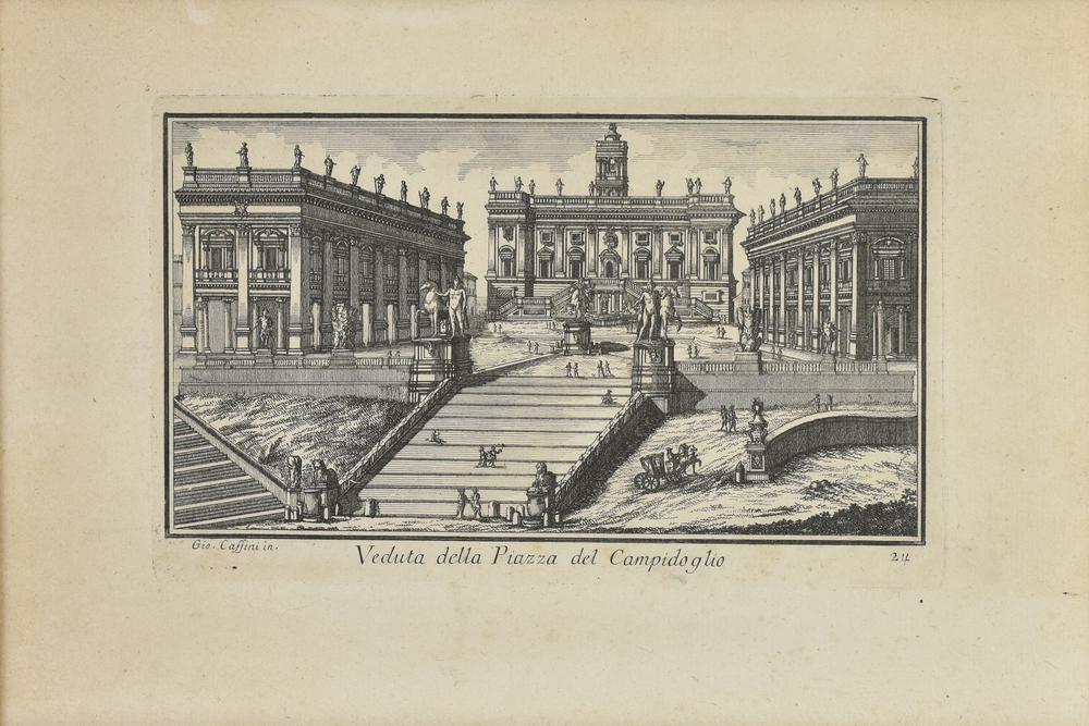 Gio. Caffini VEDUTA DELLA PIAZZA DEL CAMPIDOGLIO incisione, cm 17x27,5, su...