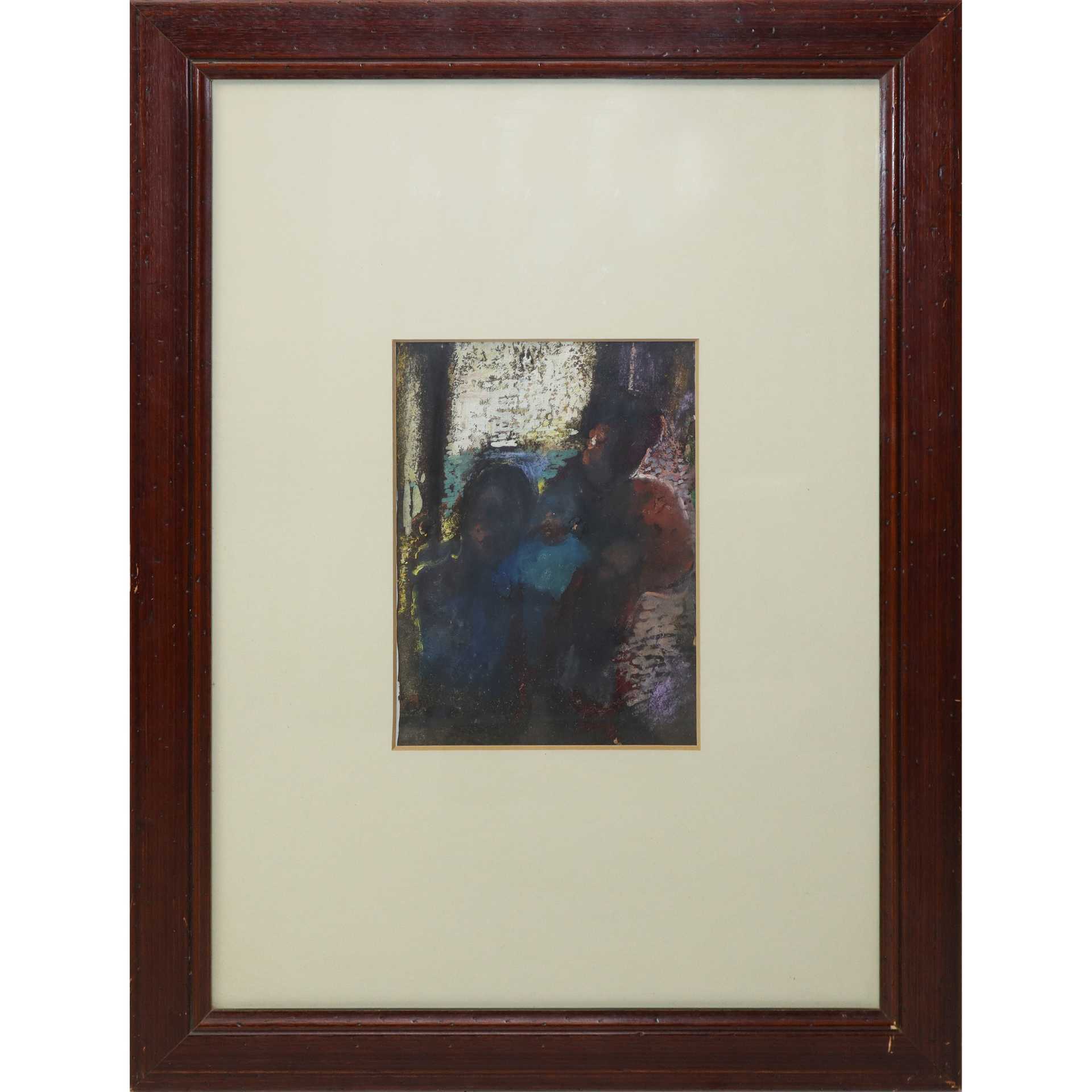 Ruggero Savinio (Torino 1934) - Figure in controluce, 1997 cm 30x22 in cornice cm 77x57 Tenica mista su carta Etichetta descrittiva della Galleria L'Androne di Scicli