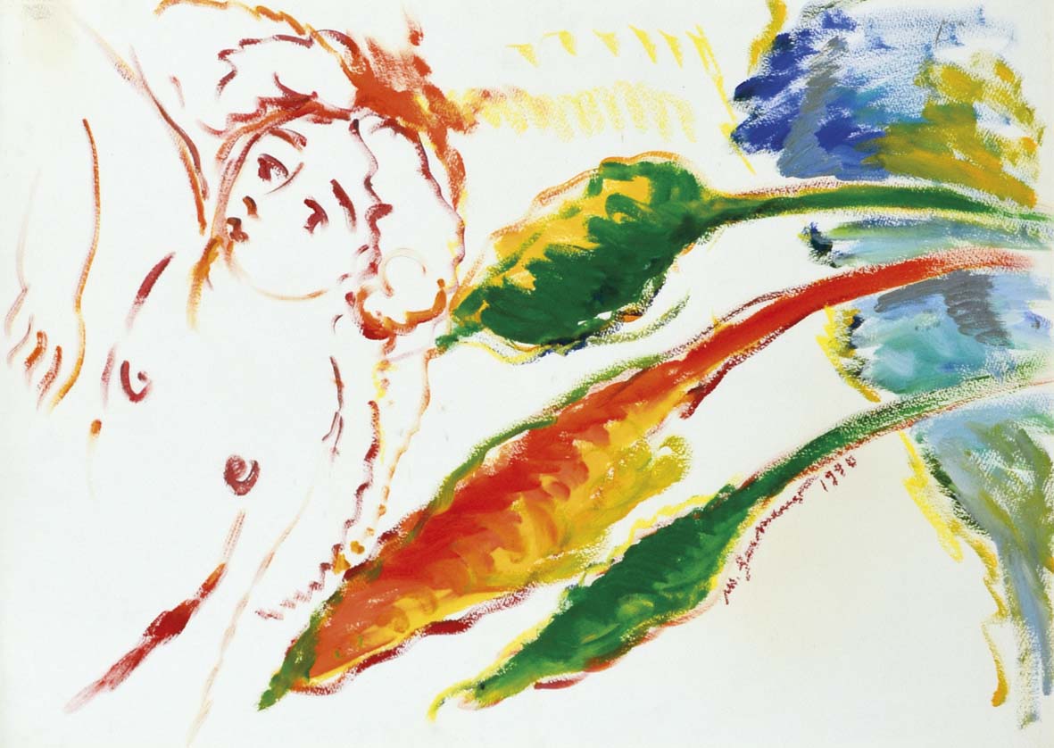 GERMANA' MIMMO Catania 1944 - 1992 senza titolo 1990 tecnica mista su carta a mano 56x77 firma e data in basso a destra Autentica dell'Archivio Generale dell'Opera Pittorica di Mimmo Germanà a cura della Galleria d'Arte l'Acquario Caltanissetta nr. Arch. 496 su foto Esposizioni: Galleria d'Arte l'Acquario Caltanissetta - timbro al retro