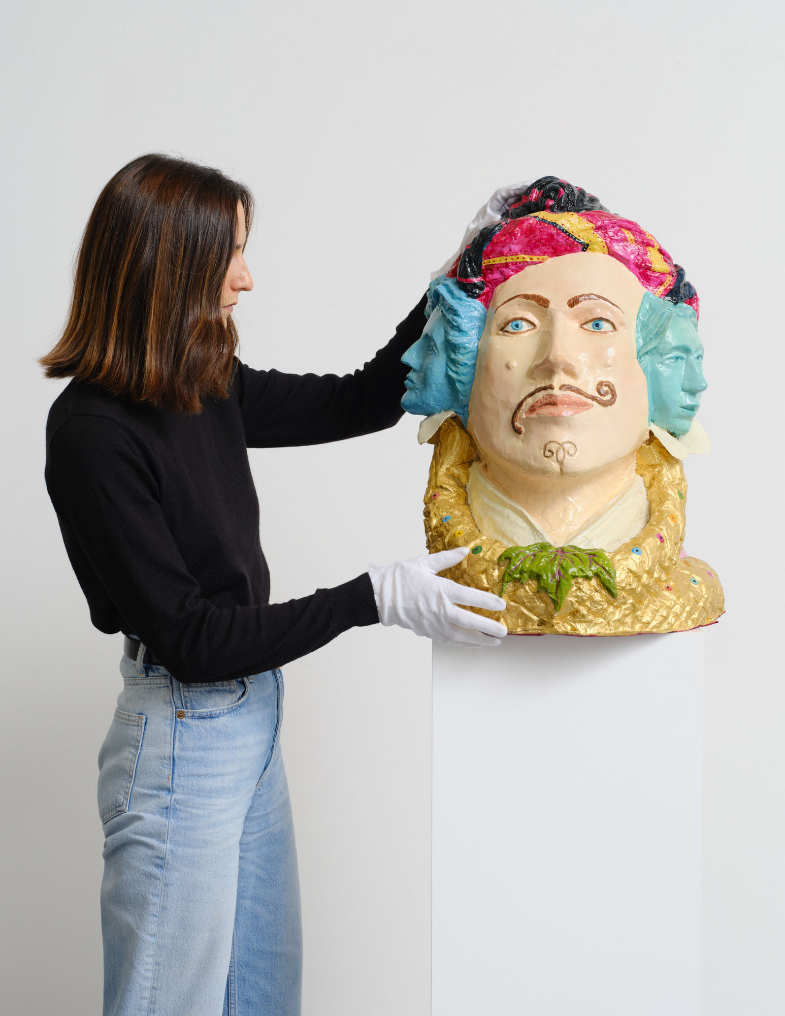 Scultura in cartapesta dipinta in olio e oro zecchino, cm 61 x 54 x 42