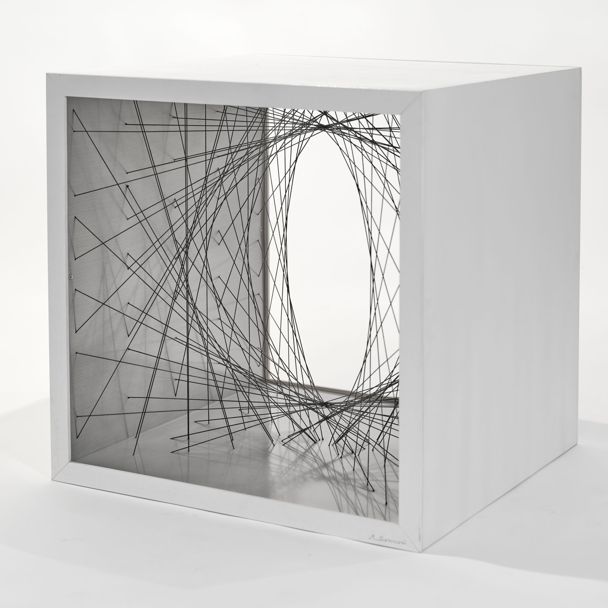 Fili elastici in box in di legno e metallo, cm 53 x 53 x 51